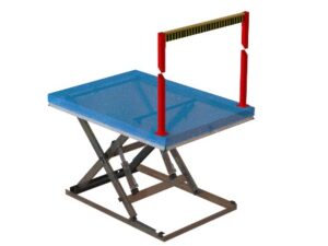W pozycji spoczynkowej płyta blokady jest całkowicie zlicowana z powierzchnią platformy, co zapewnia płynny i bezpieczny przejazd. W momencie unoszenia platformy nożycowej, mechanizm przeciwwag automatycznie aktywuje blokadę, unosząc ją do góry. Dzięki temu ładunek pozostaje stabilny i zabezpieczony przed stoczeniem.